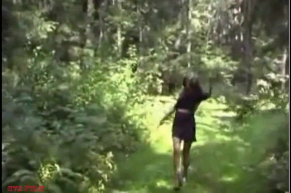 Дефицит мужиков. Русская девка в лесу трахнула себя бананом и обоссалась...